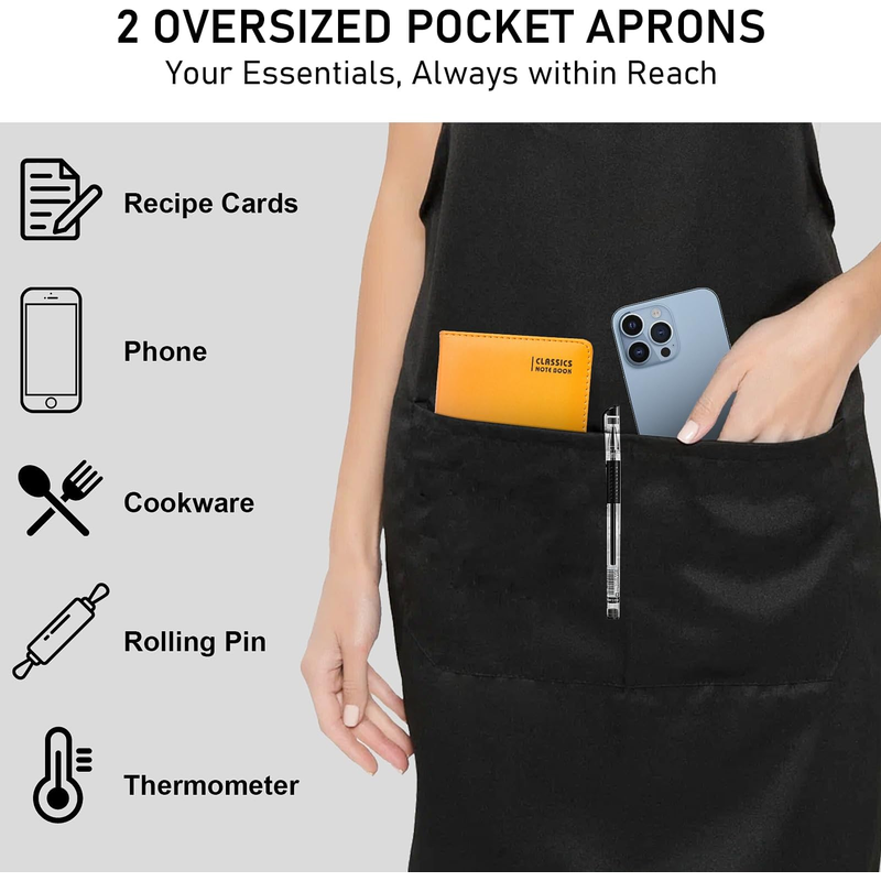 These aprons offer partial water resistance. While they protect against light spills, they are not fully waterproof. The wrinkle-free material ensures a neat appearance all day.