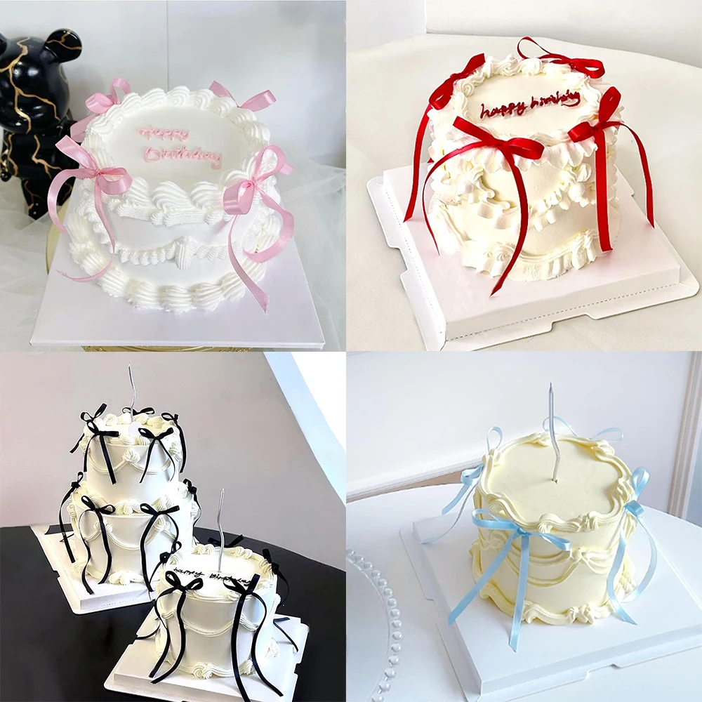 10-50PCS Bow Cake Topper Birthday Bowknot Ribbons Coquette Bow Party Decorations Bridal Cake Dessert Picks Baby Girl Boy