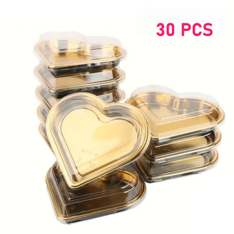 10-50pcs Heart-Shaped Serving Trays with Transparent Lids Reusable PET Snack Fruits Sushi Cheese Salads Desserts Packaging Boxes