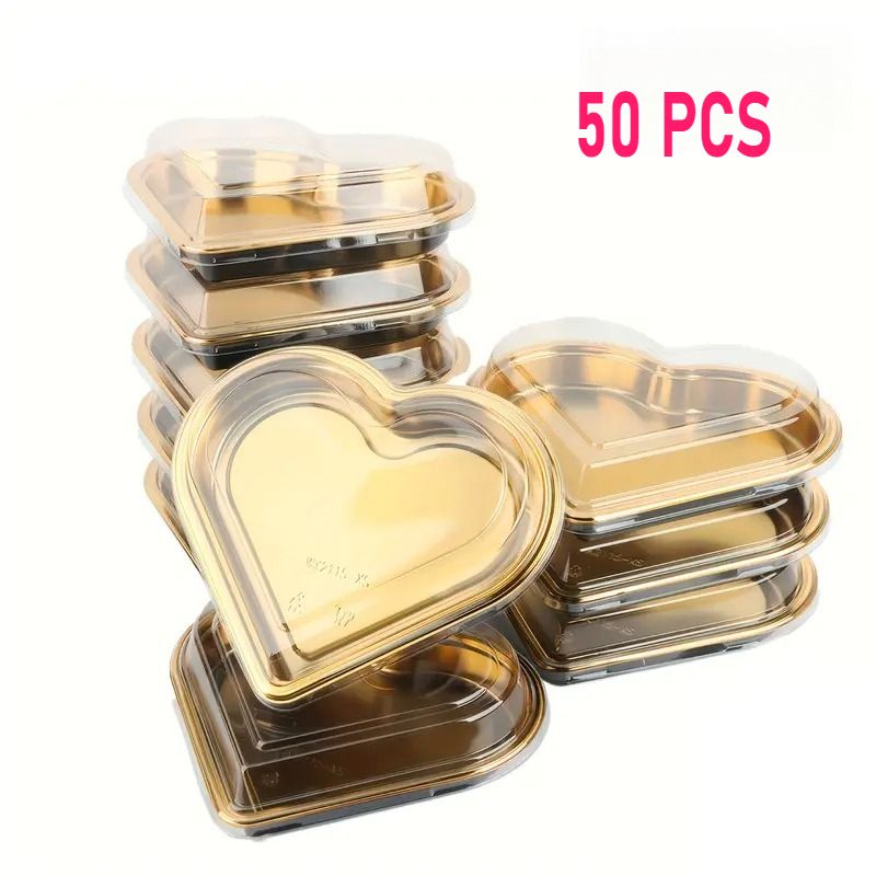 10-50pcs Heart-Shaped Serving Trays with Transparent Lids Reusable PET Snack Fruits Sushi Cheese Salads Desserts Packaging Boxes