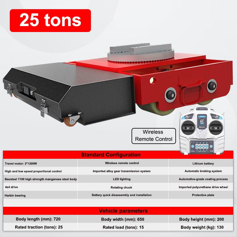 10-50T Wireless Electric Remote Control Heavy Cargo Roller Dolly Moving Transport Trolley for Machinery Workshop Construction