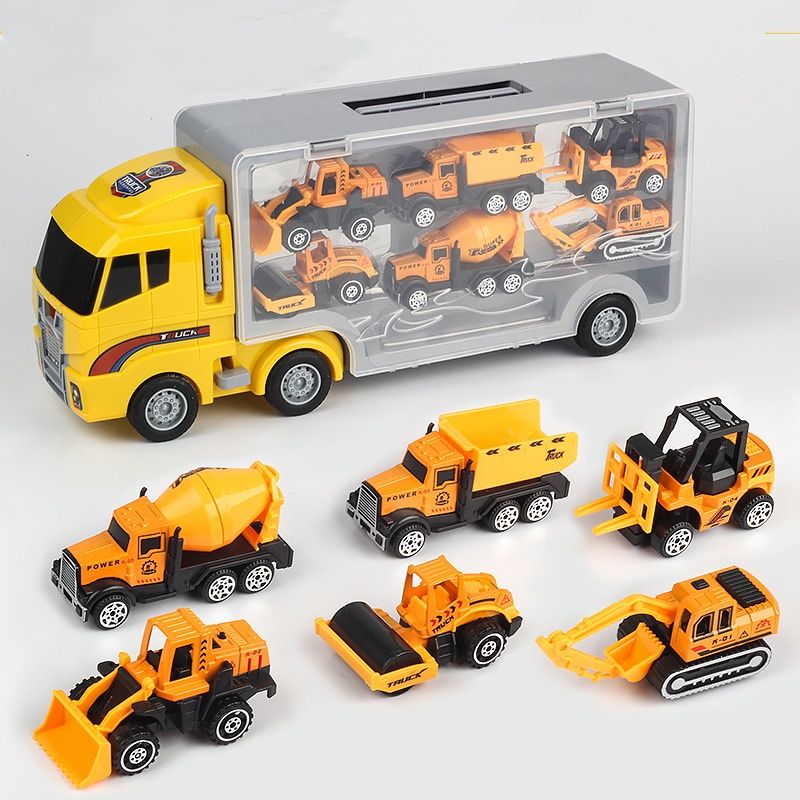 10 In 1 Construction Toys Truck Storage Die-cast Vehicle Transporter Car Set Excavator Dump Truck Digger Backhoe for Kids Gift