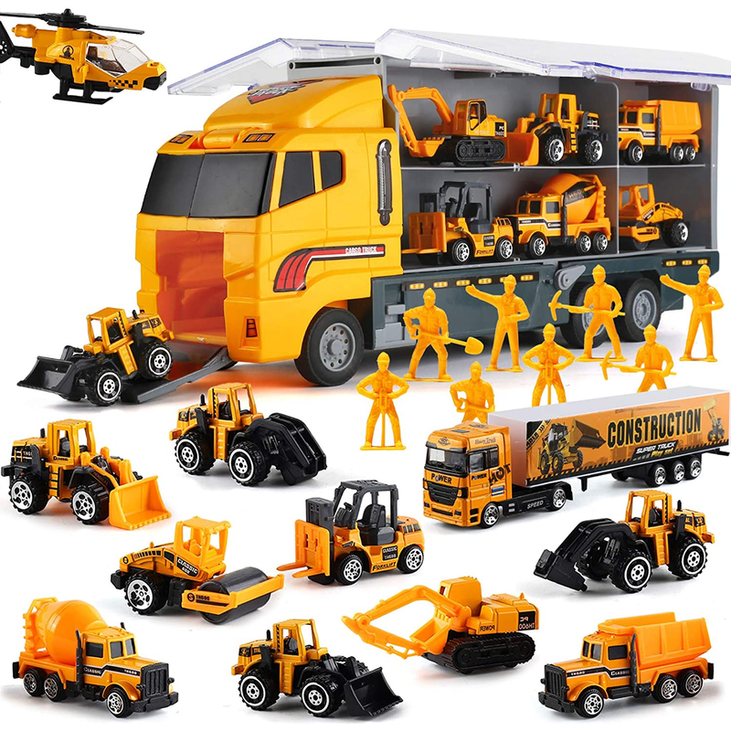 10 In 1 Construction Toys Truck Storage Die-cast Vehicle Transporter Car Set Excavator Dump Truck Digger Backhoe for Kids Gift