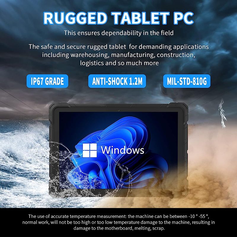 10 Inch IP67 Waterproof Shockproof Rugged Tablet PC Windows 11 Industrial Tempered Glass Computer