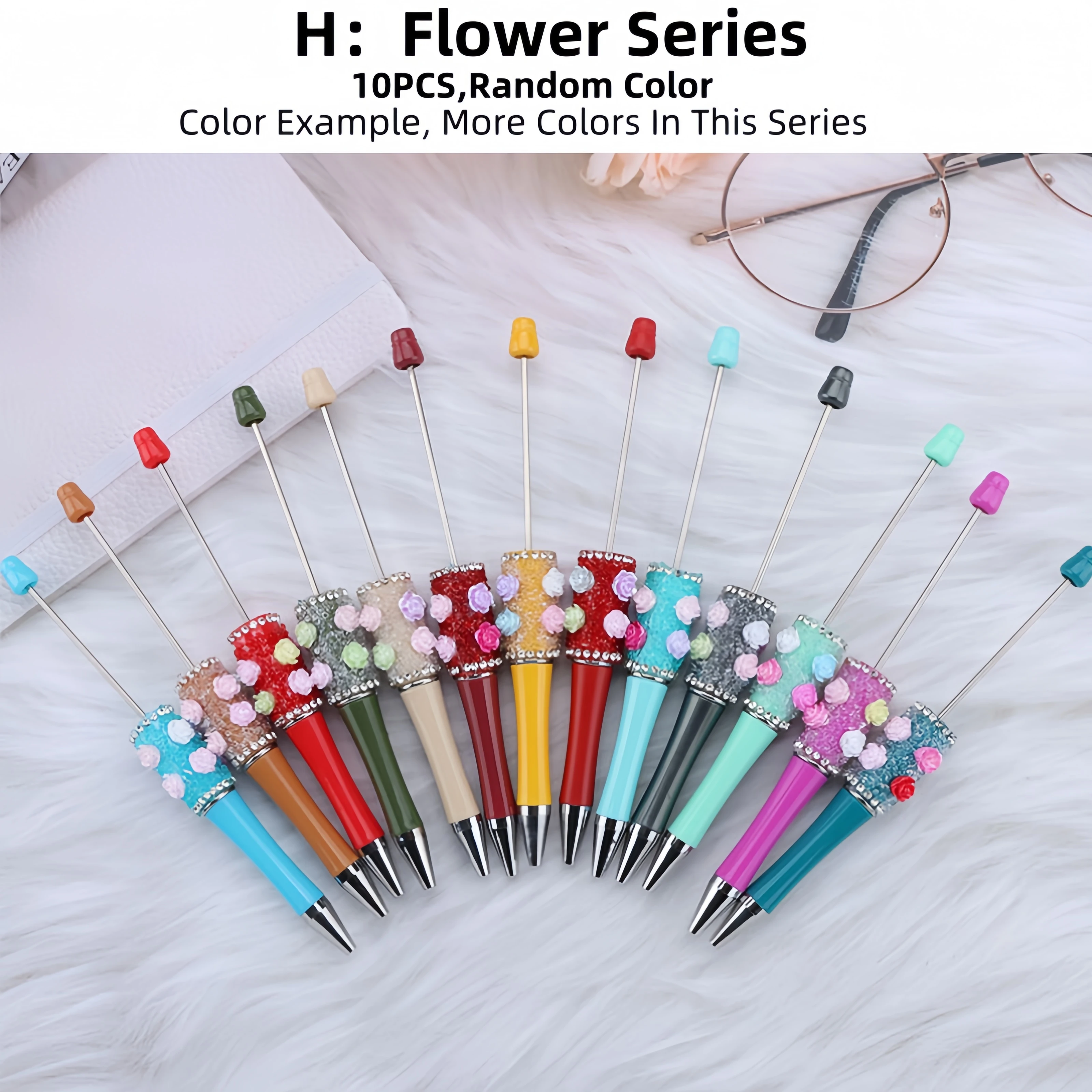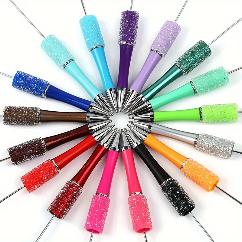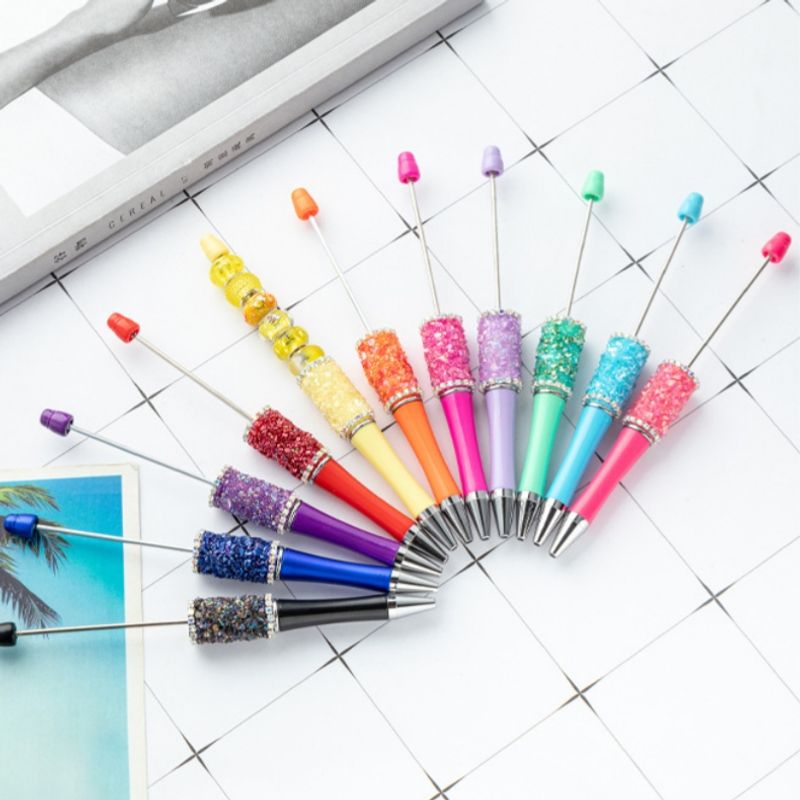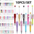 10 New Creative Bead Ballpoint Pen Sets (Random Colors), Perfect For DIY Office And School Supplies With Colored Wooden Beads