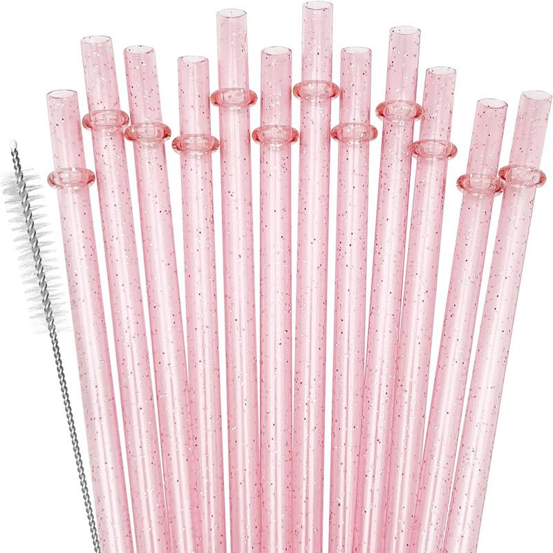 10-Pack Reusable Plastic Straw Glitter 9" Long Unbreakable Drinking Straws with 1 Cleaning Brush for Mason Jars Tumblers Cup