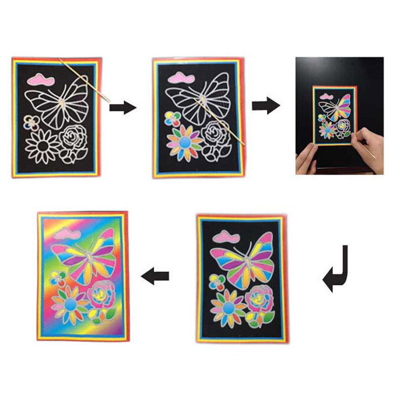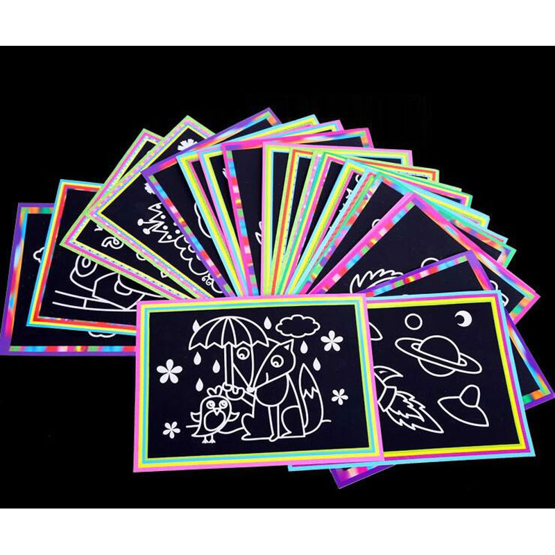 10 pcs 13x 9.8cm Scratch Art Paper Magic Painting Paper with Drawing Stick For Kids Toy Colorful Drawing Toys