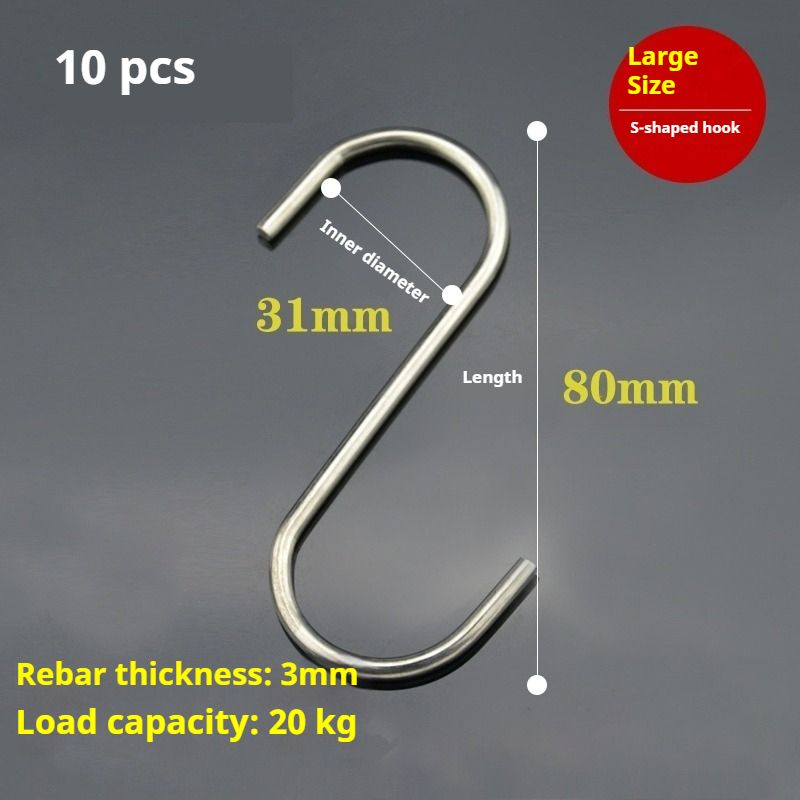 10 pcs Stainless steel S shaped hook Large hook S hook, multi purpose S shaped hook metal S-hook hook for kitchen and bathroom