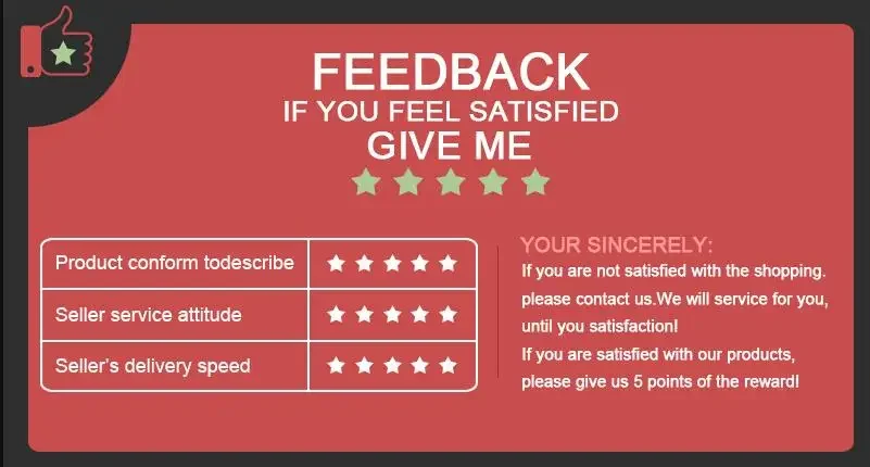 2. If you have any problem or are not entirely satisfied with your package,please don’t be hesitate to contact us first before leaving negative feedback. We will resolve the problem to satisfy you.Â