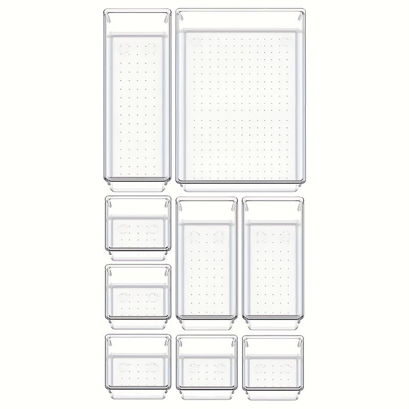10-Piece Versatile Drawer Organizer Set - Clear Plastic Trays and Dividers in 4 Sizes for Perfect Makeup and Kitchen Storage