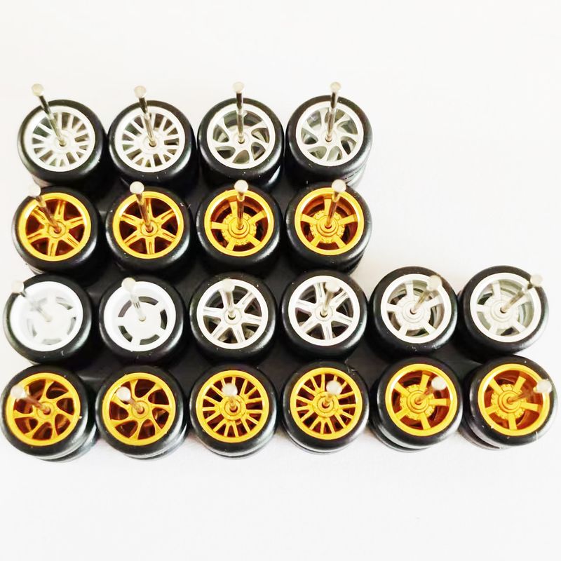 10 Sets 1/64 Alloy Car Wheels with Rubber Tires Diameter 11mm/12mm/13mm/14mm for Hot Wheel/Matchbox/Domeka/Tomy 1:64 Car Model