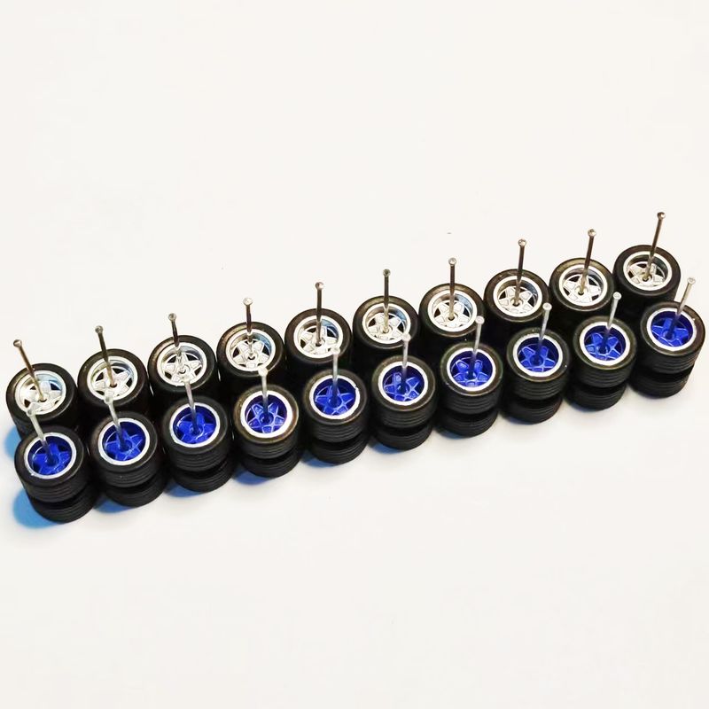 10 Sets 1/64 Alloy Car Wheels with Rubber Tires Diameter 11mm/12mm/13mm/14mm for Hot Wheel/Matchbox/Domeka/Tomy 1:64 Car Model