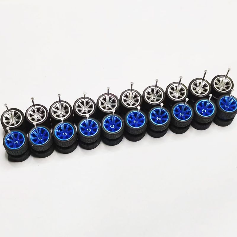 10 Sets 1/64 Alloy Car Wheels with Rubber Tires Diameter 11mm/12mm/13mm/14mm for Hot Wheel/Matchbox/Domeka/Tomy 1:64 Car Model