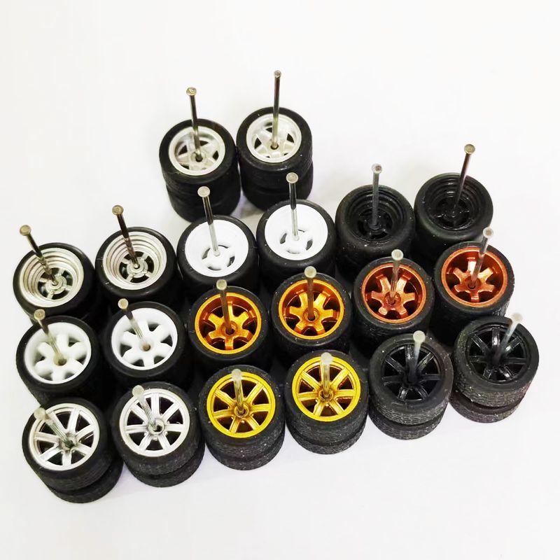 10 Sets 1/64 Alloy Car Wheels with Rubber Tires Diameter 11mm/12mm/13mm/14mm for Hot Wheel/Matchbox/Domeka/Tomy 1:64 Car Model
