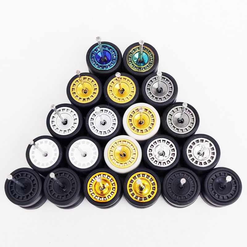 10 Sets 1/64 Alloy Car Wheels with Rubber Tires Diameter 11mm/12mm/13mm/14mm for Hot Wheel/Matchbox/Domeka/Tomy 1:64 Car Model