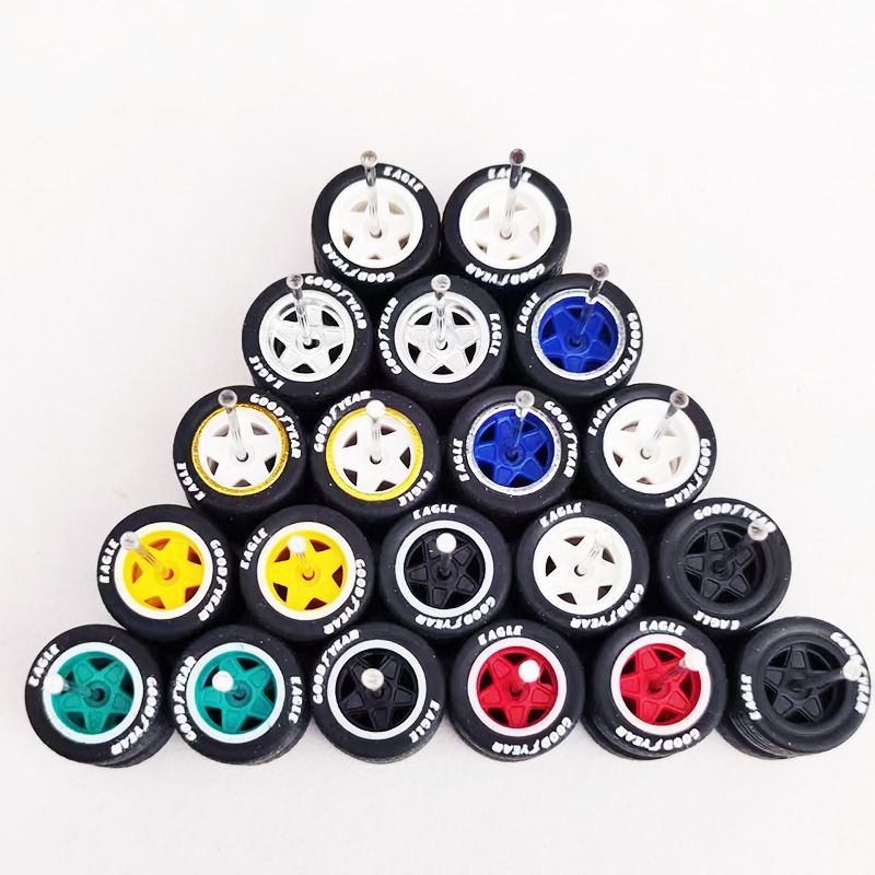 10 Sets 1/64 Alloy Car Wheels with Rubber Tires Diameter 11mm/12mm/13mm/14mm for Hot Wheel/Matchbox/Domeka/Tomy 1:64 Car Model