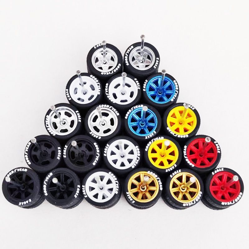 10 Sets 1/64 Alloy Car Wheels with Rubber Tires Diameter 11mm/12mm/13mm/14mm for Hot Wheel/Matchbox/Domeka/Tomy 1:64 Car Model