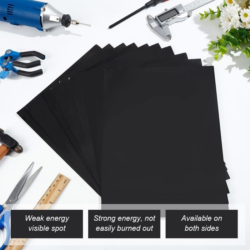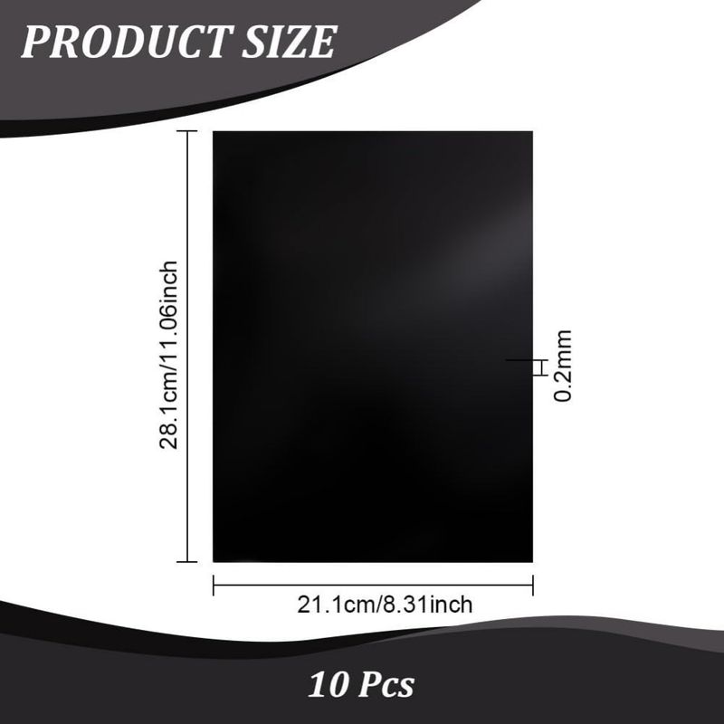 Package Includes -- The package includes 10 sheets of double-sided black laser test paper measuring 280x 210mm/11x8.3 inches with a thickness of 0.2mm.