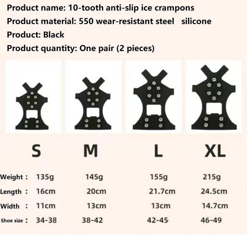 10 Studs Non-slip Crampons Outdoor Winter Shoes Spikes Ice Crampons for Walking Shoes Spikes Shoes Ice FHBZ02