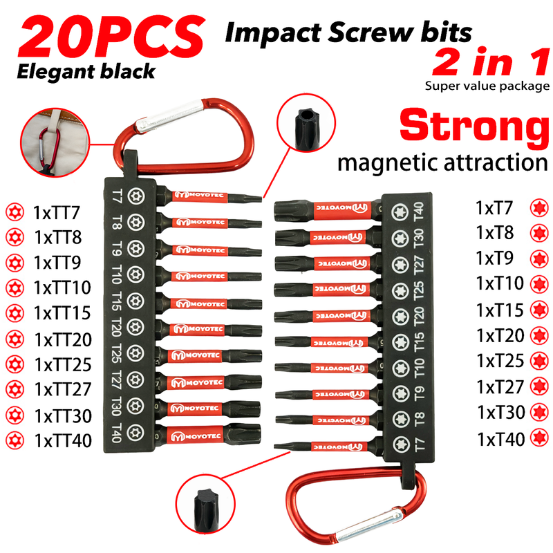 10/20 Piece Impact Screwdriver Bit Set, Made of High-Hardness S2 Alloy Steel, with Strong Magnetic Torx Head Design, Precisely Compatible with All T7 to T40 Screw Sizes, Universal 1/ 4inch Hex Shank, Suitable for Electric Screwdrivers and Manual Tools, Co