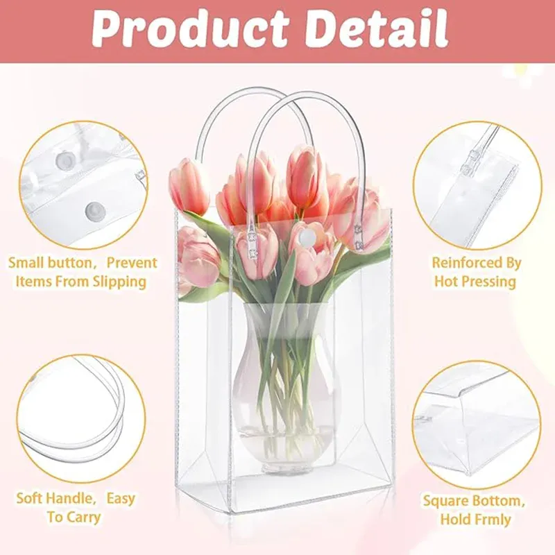 10/20/30/50/100pcsTransparent Soft PVC Gift Tote Packaging Bags with Button Hand Loop Clear Plastic Handbag Cosmetic Bag