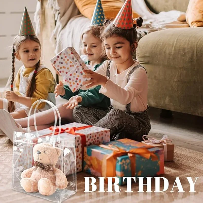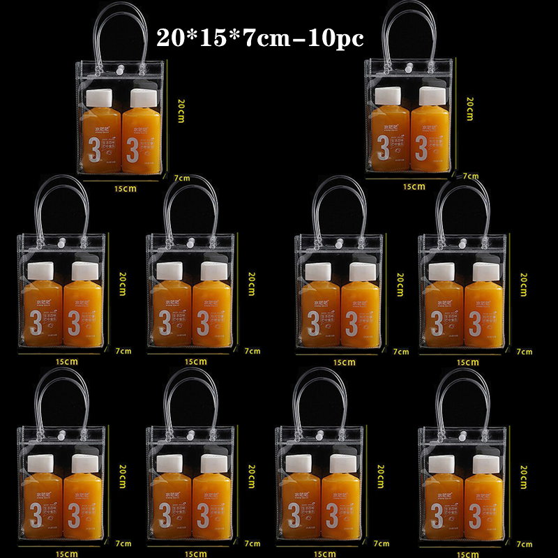 10/20/30/50/100pcsTransparent Soft PVC Gift Tote Packaging Bags with Button Hand Loop Clear Plastic Handbag Cosmetic Bag
