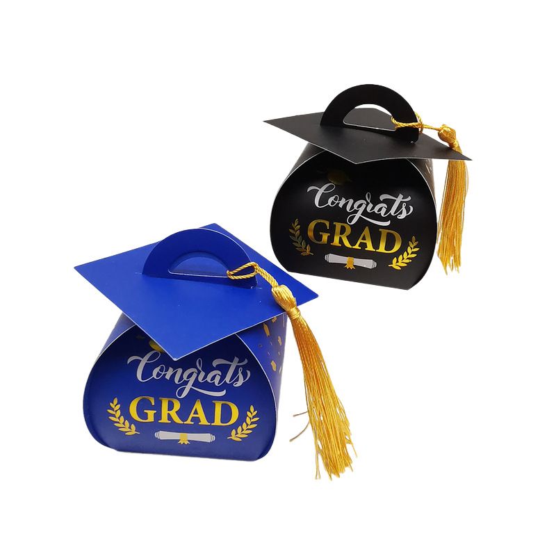 10/20Pcs Congrats Grad Cap Candy Gift Box Chocolate Celebration Paper Favor Packaging Box With Tassels Graduation Party Supplies
