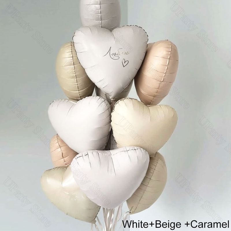 10/20Pcs Cream Heart Foil Balloons Boho Matt Pink Blue Caramel Brown Beige Heart Balloons for Baby Shower Wedding Birthday Decor