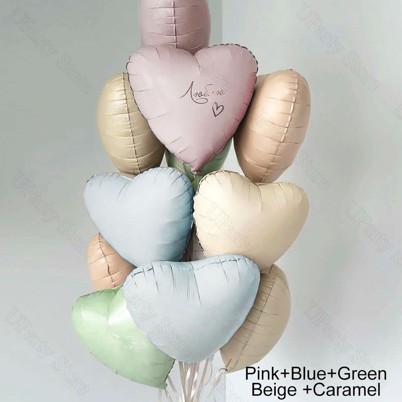 10/20Pcs Cream Heart Foil Balloons Boho Matt Pink Blue Caramel Brown Beige Heart Balloons for Baby Shower Wedding Birthday Decor