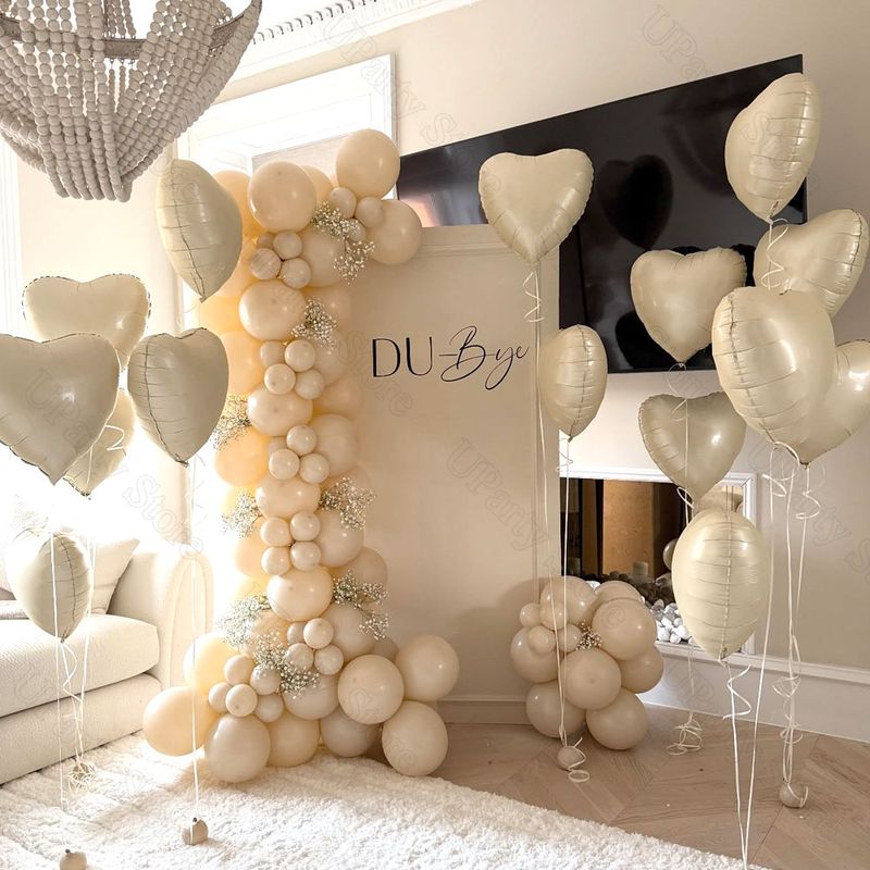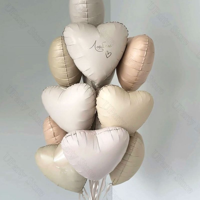 10/20Pcs Cream Heart Foil Balloons Boho Matt Pink Blue Caramel Brown Beige Heart Balloons for Baby Shower Wedding Birthday Decor