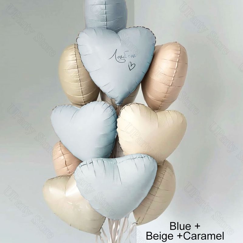 10/20Pcs Cream Heart Foil Balloons Boho Matt Pink Blue Caramel Brown Beige Heart Balloons for Baby Shower Wedding Birthday Decor