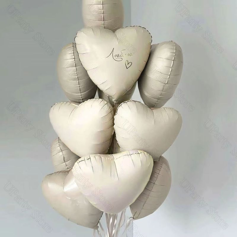 10/20Pcs Cream Heart Foil Balloons Boho Matt Pink Blue Caramel Brown Beige Heart Balloons for Baby Shower Wedding Birthday Decor