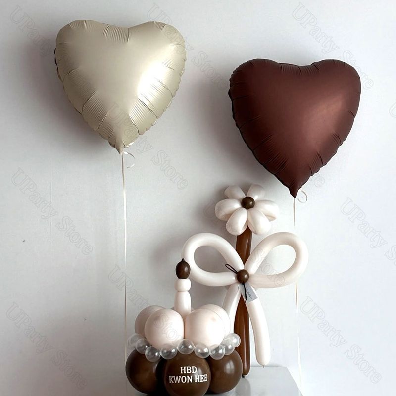 These 18-inch heart foil balloons feature a stunning matte finish in soft, boho-inspired colors like pink, blue, caramel brown, and beige. Perfect for creating a warm and elegant atmosphere at any event.