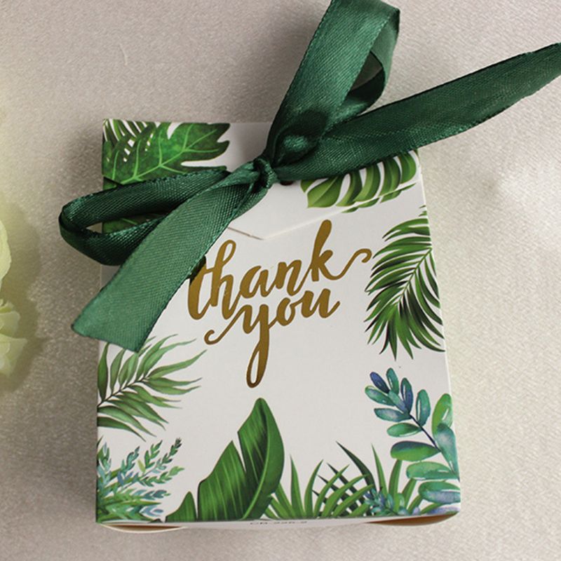 10/20pcs Thank You Candy Gift Box Green Leaf Cookie Chocolate Packaging Bag Wedding Favors for Guest Birthday Party Decor Supply
