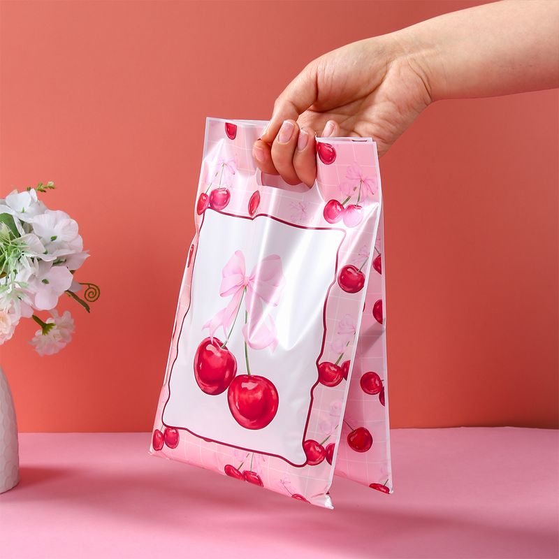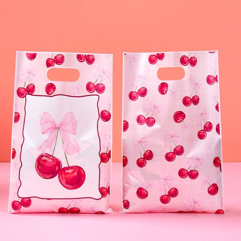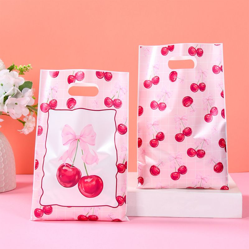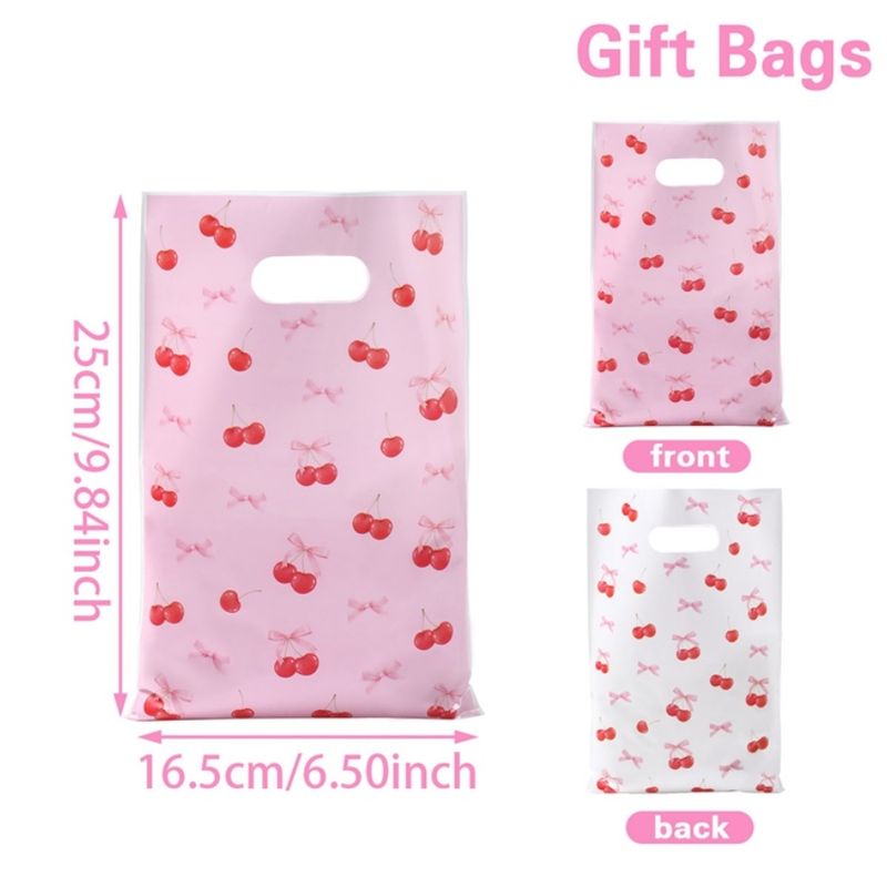 10/25/50pcs Cherry Plastic Gift Bags Girls Fruit Themed Candy Gift Bag Kid Cherry Gift Bag Baby Shower Birthday Party Decoration