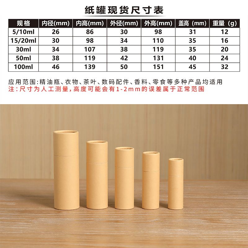10/30/50pcs Essential Oil Bottle Paper Tube Packaging Box Universal Kraft Paper Cylinder Gift Box Tea Paper Can Wholesale