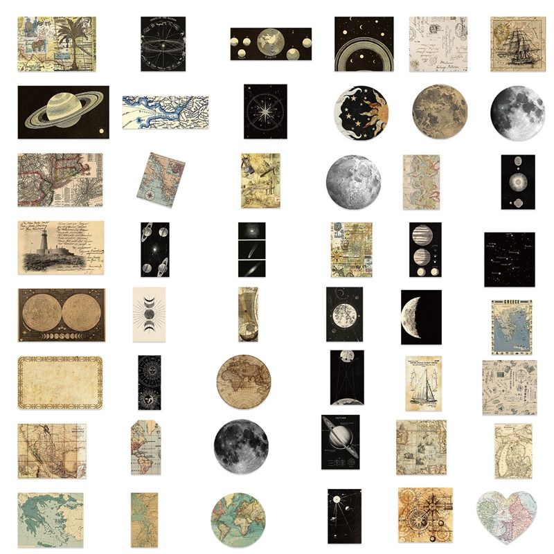 10/30/50PCS Vintage Planet Map PVC Sticker Aesthetic Chidlren's Korean Stationery DIY Decoration Scrapbooking School Supplies