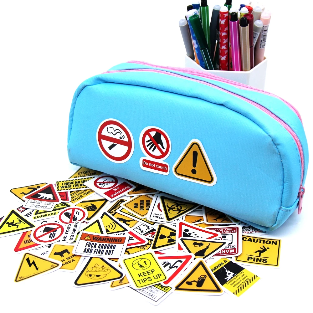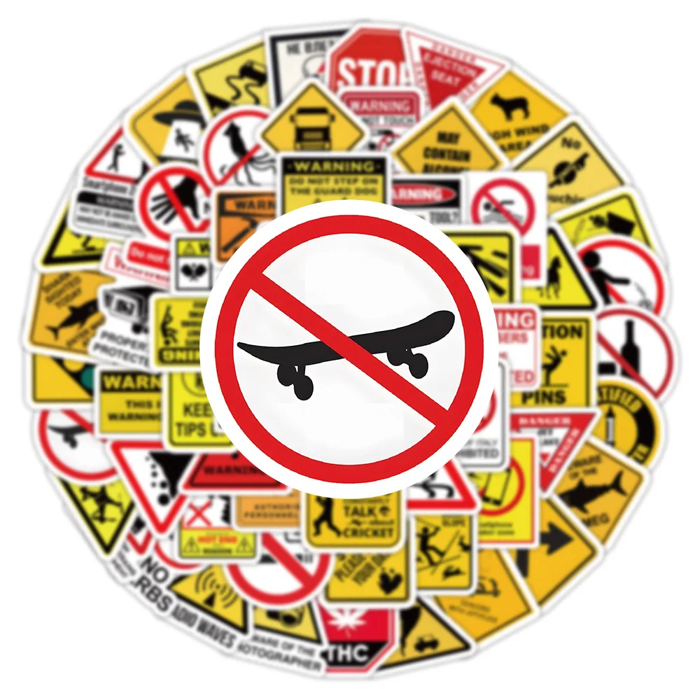 10/50/100PCS Warning Pattern Sign Stickers Pack DIY Skateboard Motorcycle Suitcase Stationery Decals Decor Phone Laptop Toys
