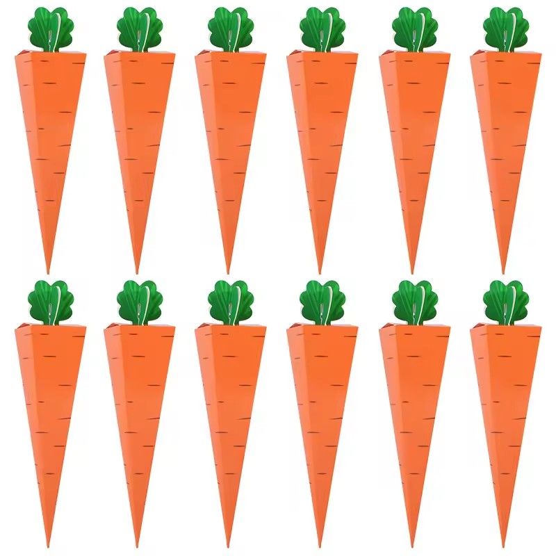 10/50pcs Easter Carrot Paper Candy Box Bunny Rabbit Cookie Snack Packaging Bags Spring Easter Party Decoration Kids Birthday Fav