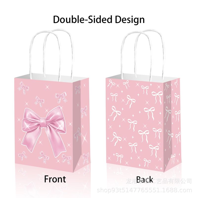 10/50pcs Pink Bow Themed Party Paper Gift Bag Candy Gift Bag Bridal Engagement Wedding Kids Birthday Baby Shower Party Supplies