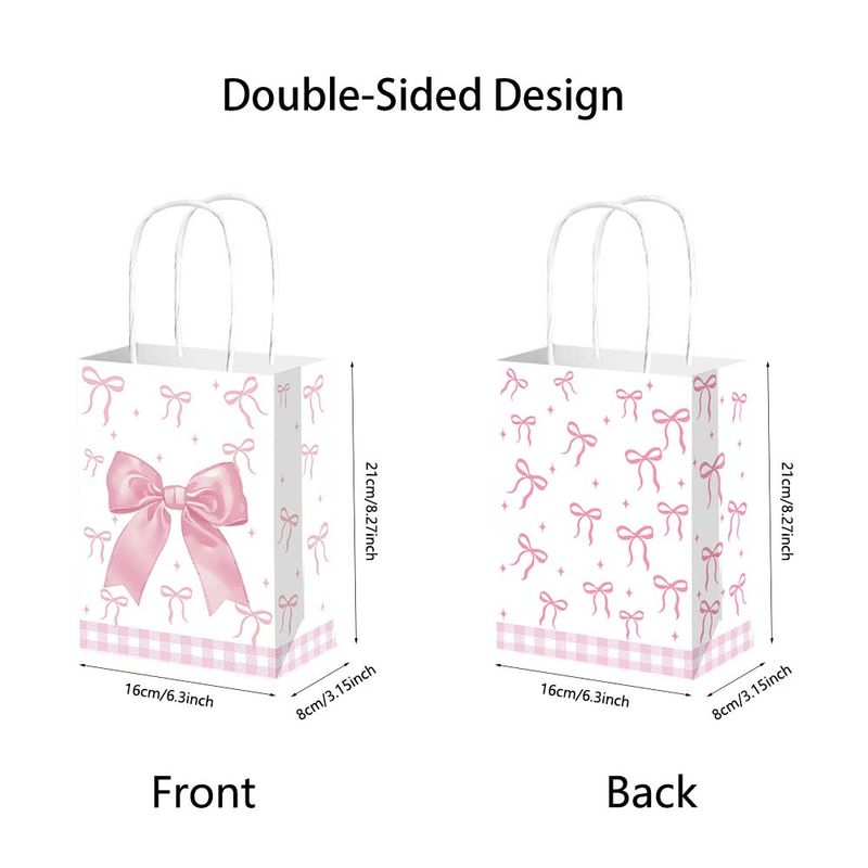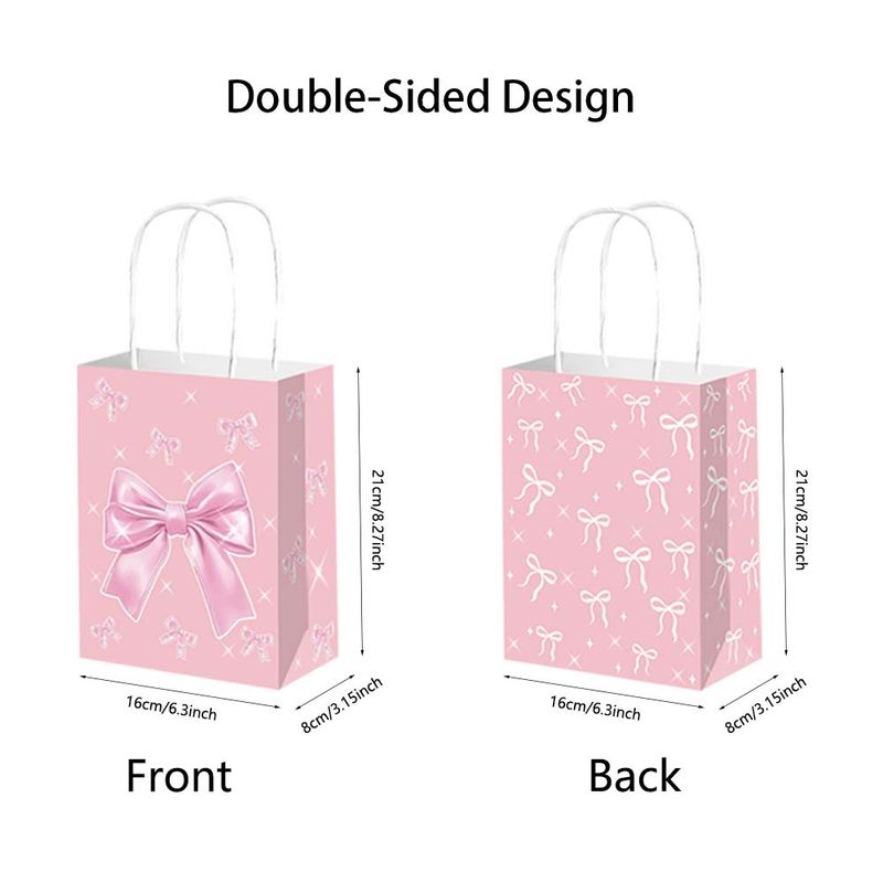 10/50pcs Pink Bow Themed Party Paper Gift Bag Candy Gift Bag Bridal Engagement Wedding Kids Birthday Baby Shower Party Supplies