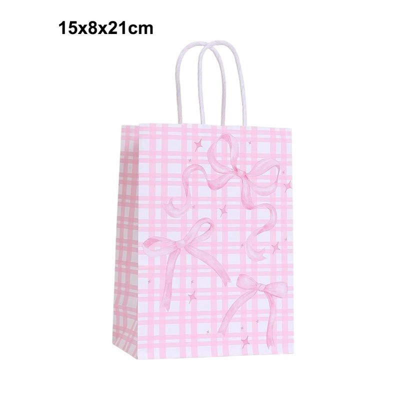 10/50pcs Pink Bow Themed Party Paper Gift Bag Candy Gift Bag Bridal Engagement Wedding Kids Birthday Baby Shower Party Supplies