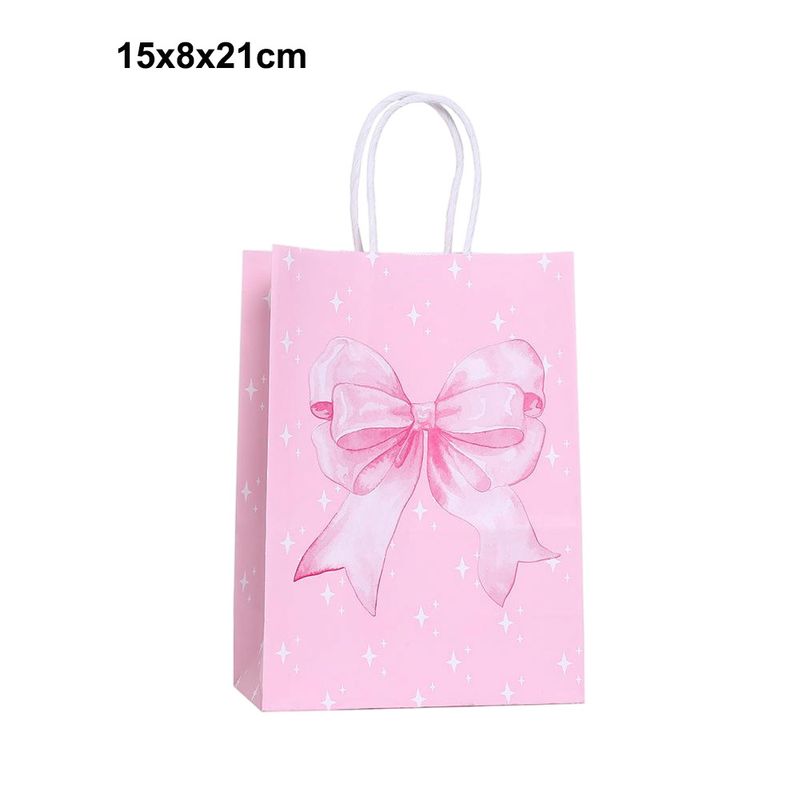 10/50pcs Pink Bow Themed Party Paper Gift Bag Candy Gift Bag Bridal Engagement Wedding Kids Birthday Baby Shower Party Supplies