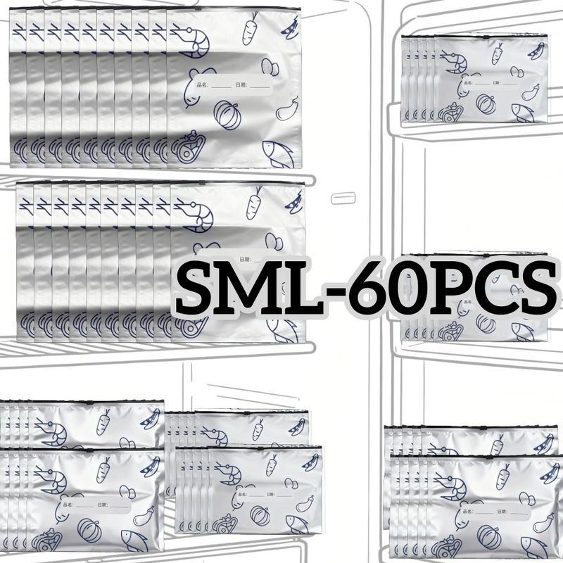 10/60pcs Aluminum Foil Storage Bags Freezer Sealed Organizers Food Packaging Reusable Pantry Odor-Proof Bag Kitchen Essential