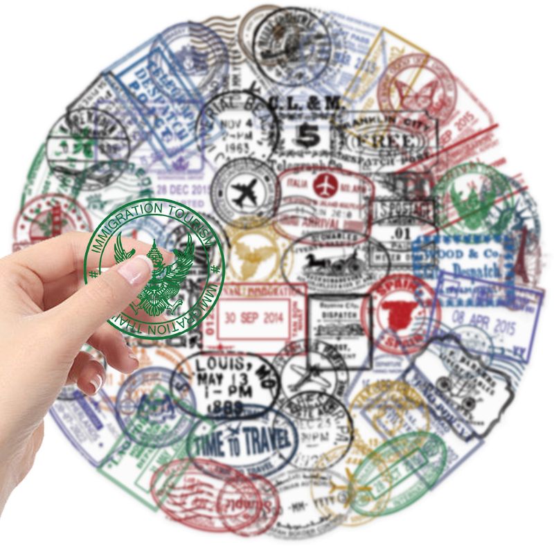 10/60PCS Vintage Passport Stamps Transparent Stickers Travel Decals For Phone Notebook Luggage Skateboard Guitar DIY Sticker Toy