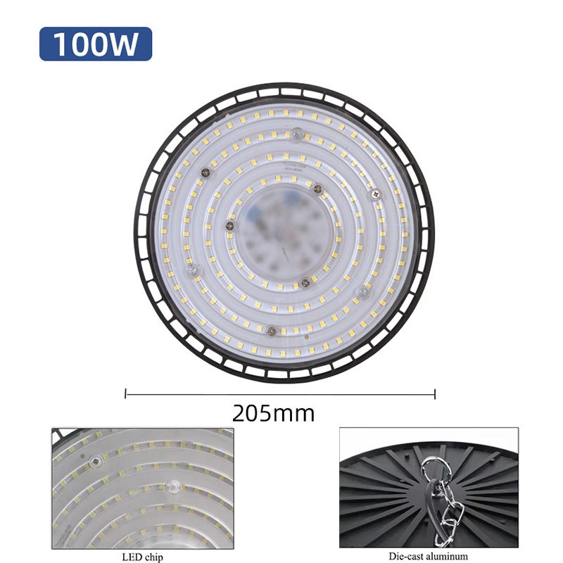 100-200W LED Industrial UFO High Bay Lamp Super Bright Durable Workshop Warehouse Factory Indoor Lighting Waterproof Chandelier