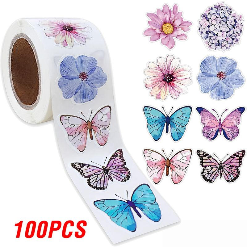 100-500pcs Butterfly Flower Sticker 8 Design Colorful Butterfly Decals Cute Stickers Party Decoration Scrapbook Stationery