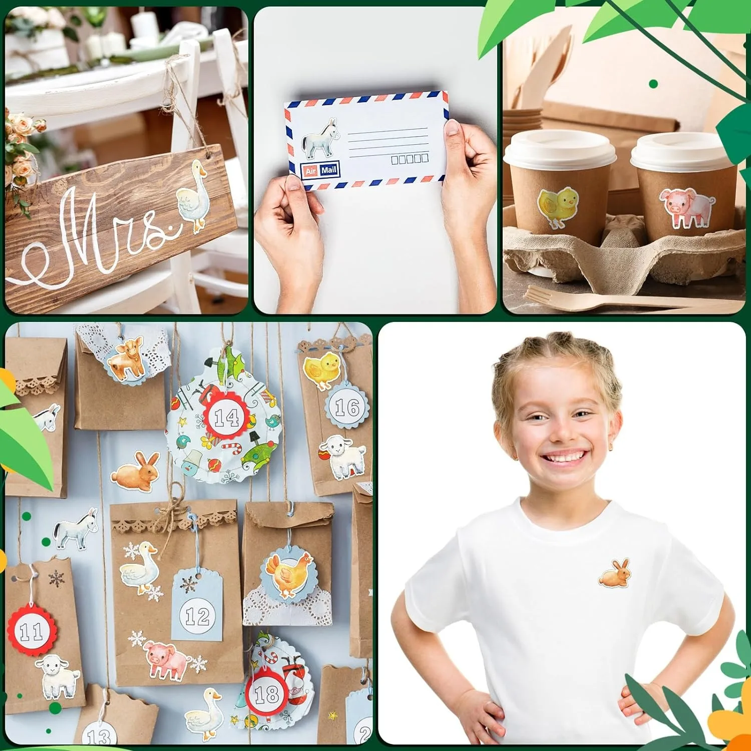 100-500pcs Cartoon Farm Zoo Animals Stickers Decoration Reward DIY Stickers Scrapbook Skateboard Round Sealing Label Stationery