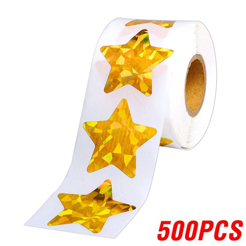 100-500pcs Holographic Star Reward Stickers Corlorful Adhesive Star Stickers Reward Chart Decorative Toy Gifts Sticker Labels