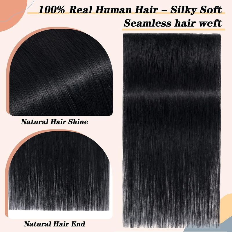 100% Brazilian Clips In One Piece Hair Extension Natural Straight Remy Human Hair Invisible Seamless Clip in Straight One Piece